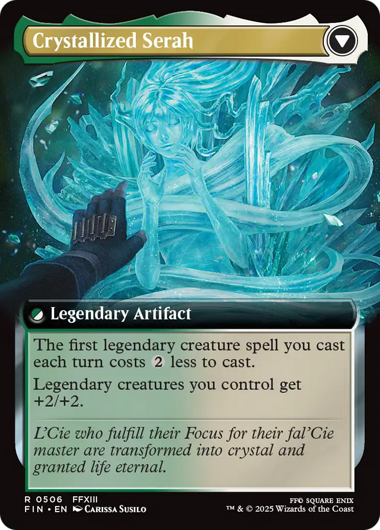 At the beginning of combat on your turn, if you control two or more other legendary creatures, you may transform Serah Farron.